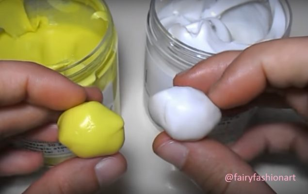 - Meng de twee componenten (A en B) als klei gedurende 2-3 minuten totdat je een homogeen mengsel en een gelijkmatige kleur krijgt.