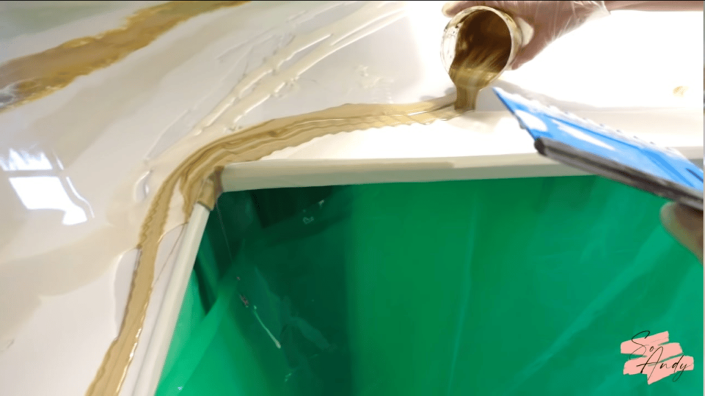 Deze “randen” zijn niet alleen nodig om te voorkomen dat de omgeving vies wordt, maar ook om de hars onder controle te houden. In het eerste uur, wanneer de hars nog vloeibaar is, kan deze snel over de randen vloeien en vlekken veroorzaken. Verwijder de randen na ongeveer een uur, wanneer de hars al dikker is geworden, en strijk de randen glad met je vinger of een spatel om mooie karamelkleurige hoeken te krijgen!