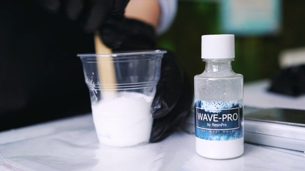 - Mengkleur golfeffect: De hars en het Wave Pro-mengsel moeten intens wit zijn. Voeg de Wave Pro-poeder beetje bij beetje toe en meng het grondig totdat een perfect witte kleur ontstaat.