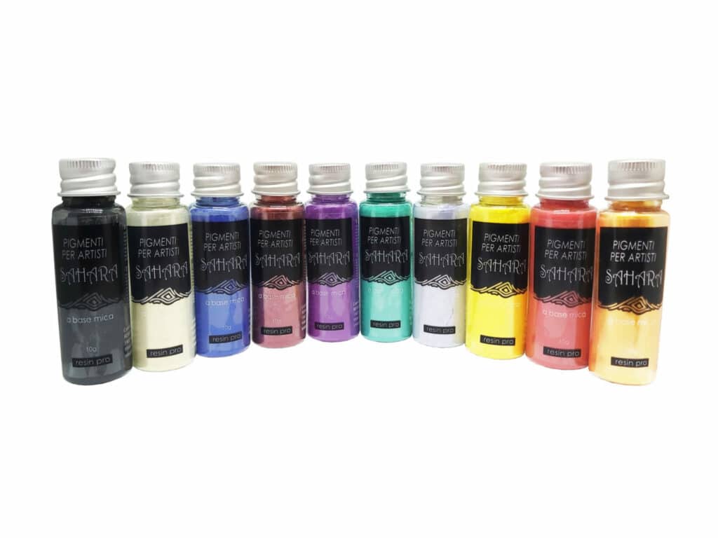 Mica Powder SAHARA Set includes 10 colours of 10 gr [0,02 lb] each.