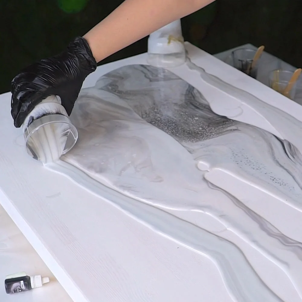 Kristalheldere, zelfnivellerende epoxyhars met hitte- en UV-bestendigheid – Zorgt voor een perfecte, glanzende afwerking die bestand is tegen slijtage, krassen en verkleuring. 💎