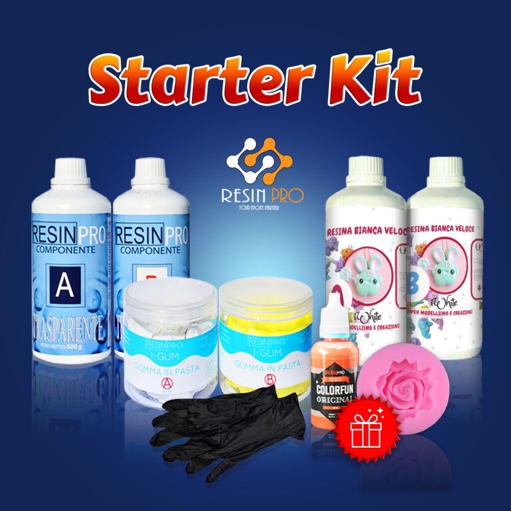 “Starter Kit”, dat alle producten van het kit bevat met hars en siliconenpasta. Of je nu een eenvoudige harssleutelhanger of een doe-het-zelf harslamp wilt maken, hier is alles wat je nodig hebt.